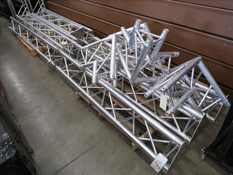 LOT, (4) TAF TRUSS FT33-200 2M, (4) FT33-250 2.5M & (4) FT33-C34 RIGHT ANGLE TRIANGLE ALUMINUM TRUSSES (2 PALLETS)