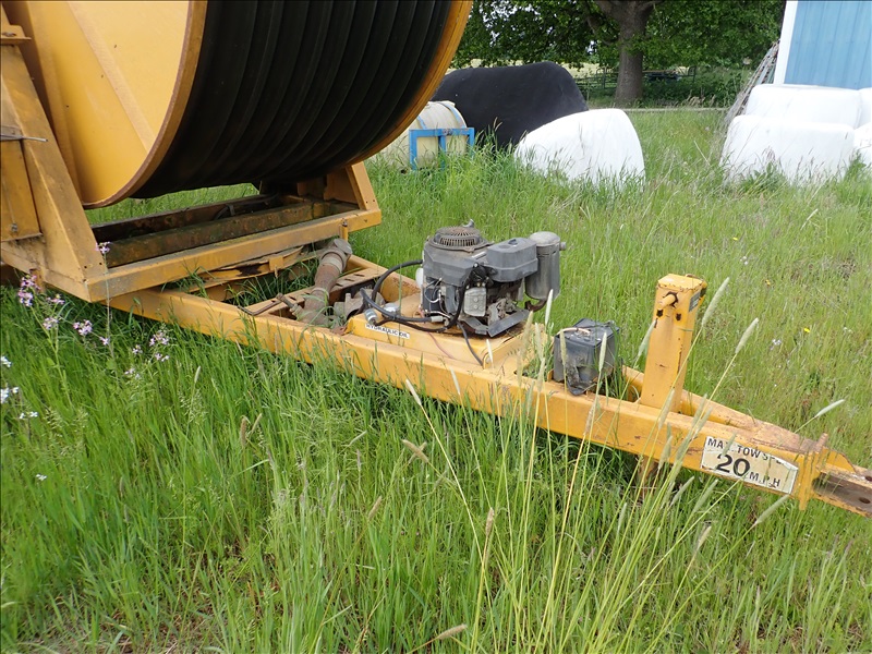 4" IRRIGATION REEL W/HYDRAULIC STABILIZERS & GUN
