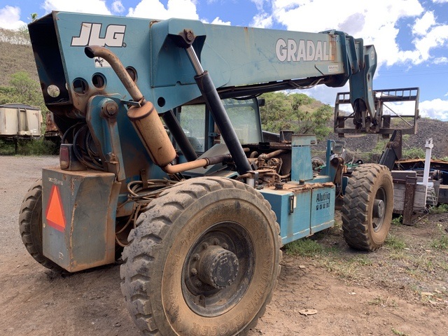 10,000LB TELEHANDLER FORKLIFT, 4X4. HYDRAULIC LEVELING, OUTRIGGERS, JOHN DEERE DIESEL (HOUR METER NOT OPERATIONAL)