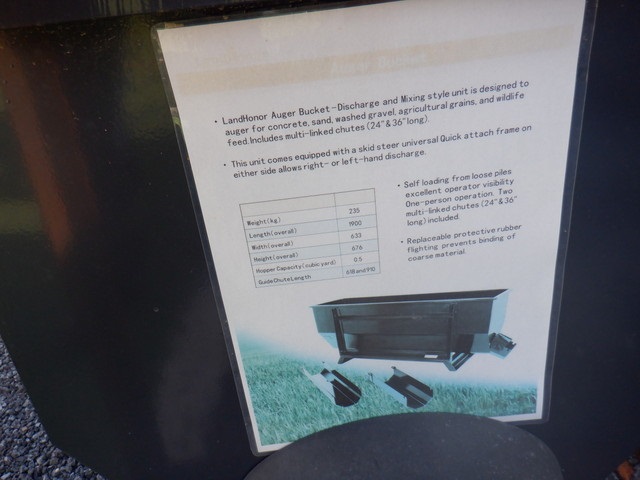 AUGER BUCKET, SKIDSTEER Q/C, 1/2 YARD CAPACITY, MULIT-LINKED 24" & 36" CHUTES