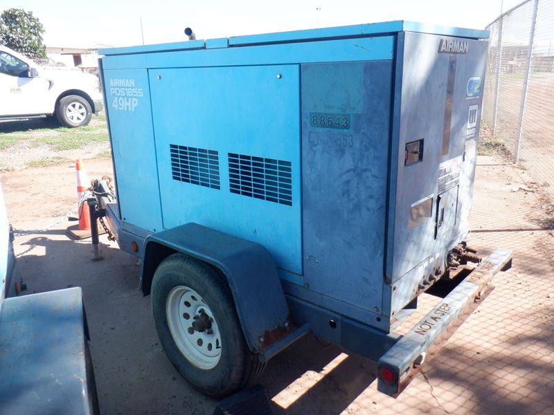 TRAILER MOUNTED AIR COMPRESSOR, 185 PSI, ISUZU DIESEL ENGINE