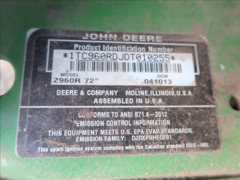 2013 JOHN DEERE Z960R ZERO TURN 72" ROTARY MO...