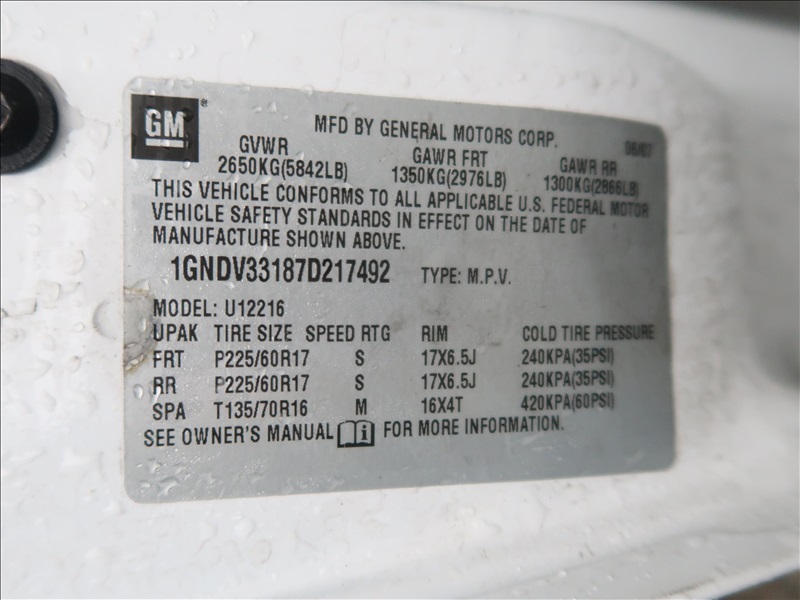 6-PASSENGER VAN, 2WD, 6 CYL, AUTO, A/C, CRUISE, TILT, P/WDW, P/SEAT, P/LOCK (BAD TRANSMISSION)