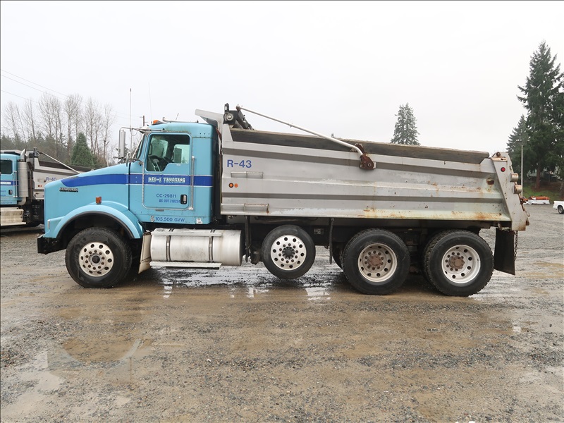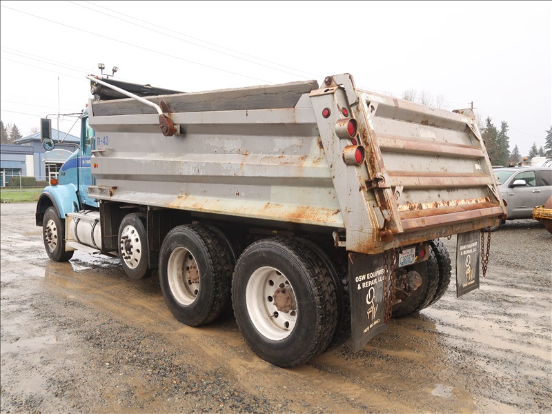 TRI/A, DUMP TRUCK, 16' STEEL BOX, TARP SYSTEM, 525 HP, CUMMINS ISX, 18 SPD, CHALMERS SUSPENSION, 214" W/B, 14,600 LB FRONT, 46,000 LB REARS, 4.10 RATIO, LOCKER, DROP AXLE
