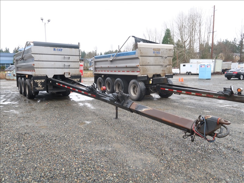 QUAD/A, 18' STEEL BOX PUP TRAILER, EXTENDABLE REACH, SPRING SUSPENSION, FRONT DROP AXLE, TARP SYSTEM, 425/65R22.5
