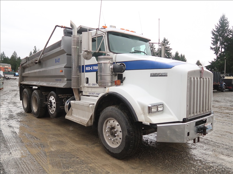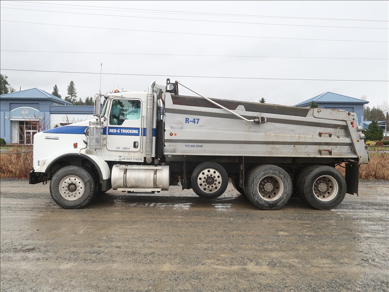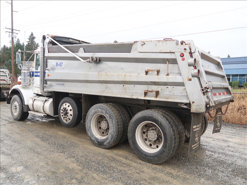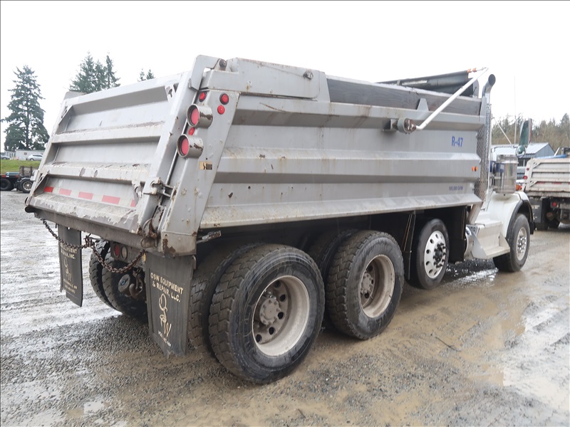 TRI/A, DUMP TRUCK, 16' STEEL BOX, HIGH LIFT GATE, TARP SYSTEM, 500 HP, PACCAR MX13, 18 SPD, CHALMERS SUSPENSION, 214" W/B, 14,600 LB FRONT, 46,000 LB REARS, 4.10 RATIO, LOCKER, DROP AXLE, PLUMBED FOR PUP