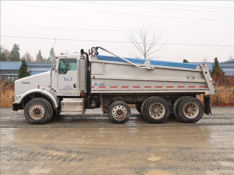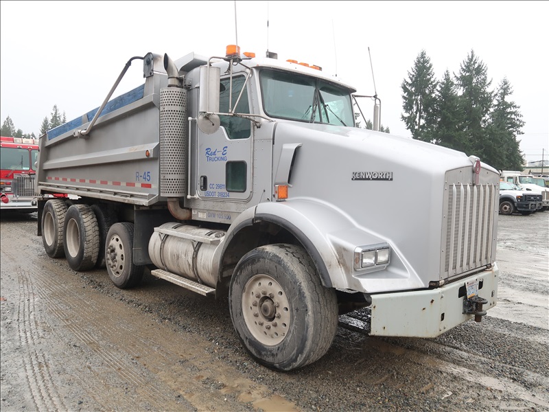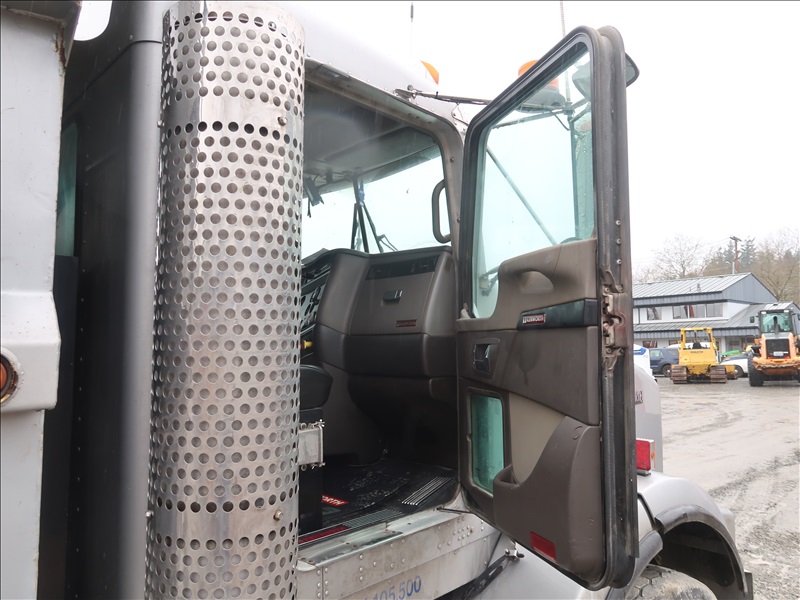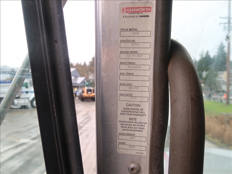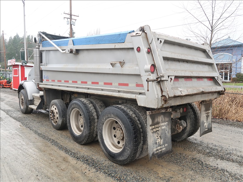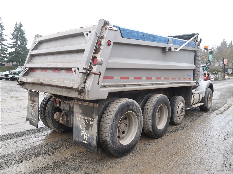 TRI/A, DUMP TRUCK, 16' STEEL BOX, TARP SYSTEM, 475 HP, CAT C15, 18 SPD, CHALMERS SUSPENSION, 214" W/B, 14,600 LB FRONT, 46,000 LB REARS, 4.10 RATIO, LOCKER, DROP AXLE, PLUMBED FOR PUP