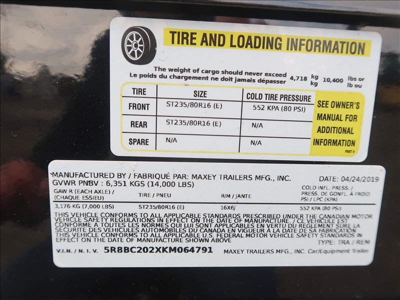 T/A, 20' TILT DECK TRAILER, 14,000 LB GVWR, TORTION AXLES, ELECTRIC BRAKES, 235/80R16