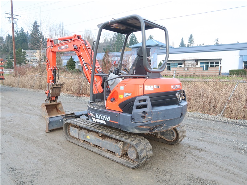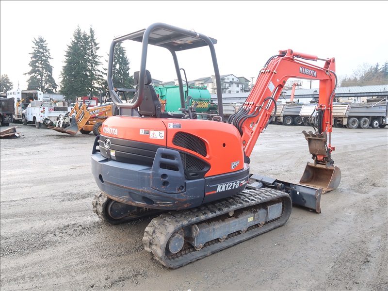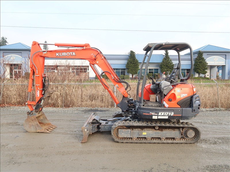 MINI EXCAVATOR, 42 HP V2203-M, SWING BOOM, HPF HYD THUMB, QC 24" BUCKET, 6-WAY BLADE, RUBBER TRACKS, CANOPY
