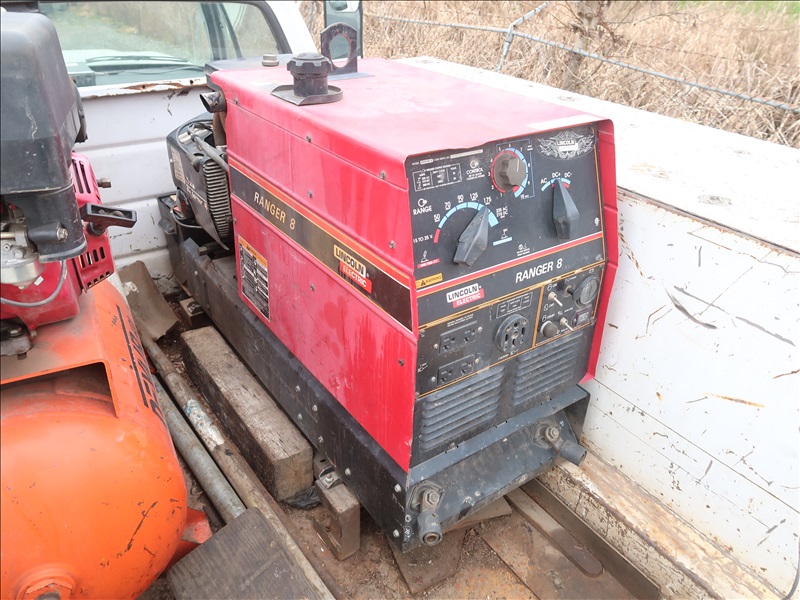 SERVICE BODY, LINCOLN RANGER 8 WELDER, DEVAIR AIR COMPRESSOR, CRANE, V8, 4 SPD