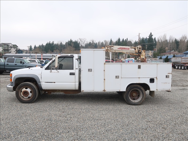 DAY CAB, SERVICE BODY, RAWSON-KOENIG3200 HYD CRANE, 6.5L DIESEL, AUTO