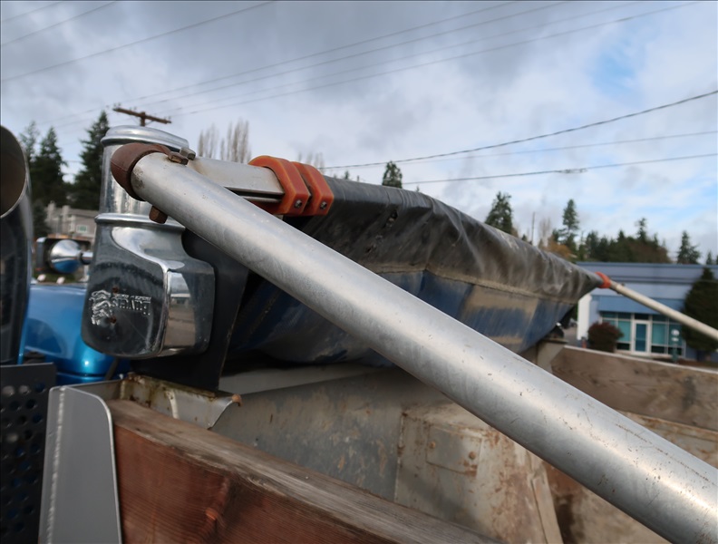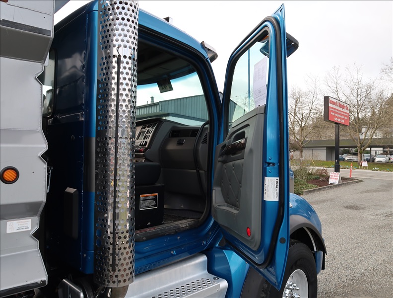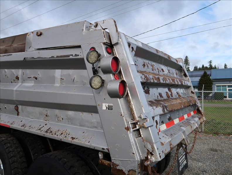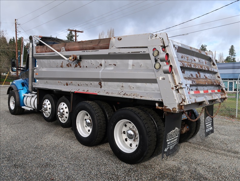 QUAD/A, DUMP TRUCK, 18' STEEL BOX, HIGH LIFTGATE, TARP SYSTEM, 550 HP CUMMINS ISX, 18 SPD, CHALMERS SUSPENSION, 234" W/B, 20,000 LB FRONT, 46,000 LB REARS, 4.10 RATIO, DOUBLE LOCKERS, (2) DROP AXLES, (2) DOUBLE LOCKERS, NAV PLUS DISPLAY