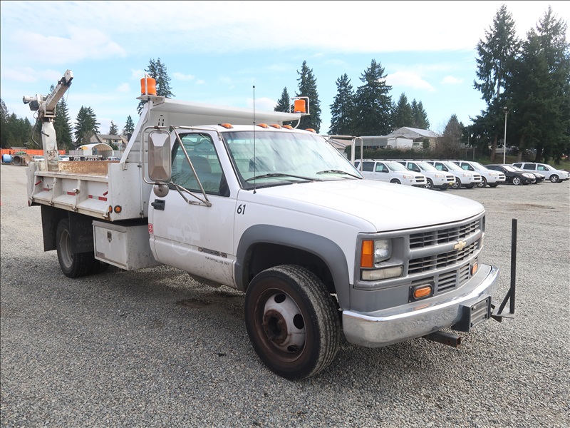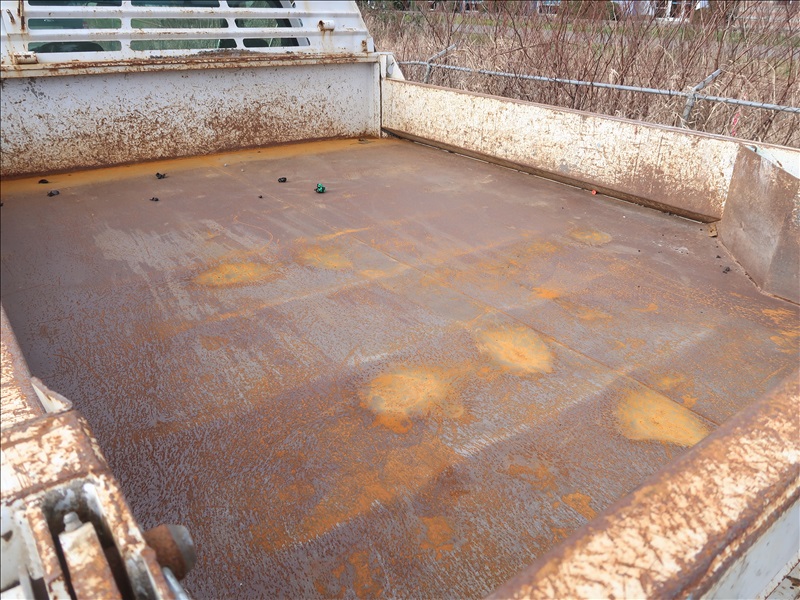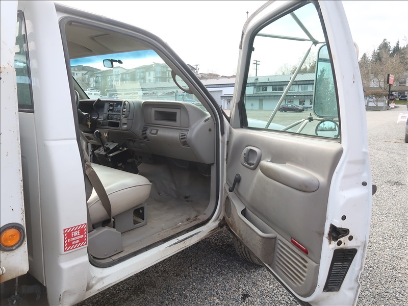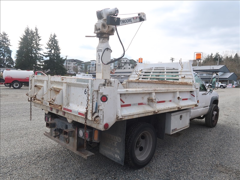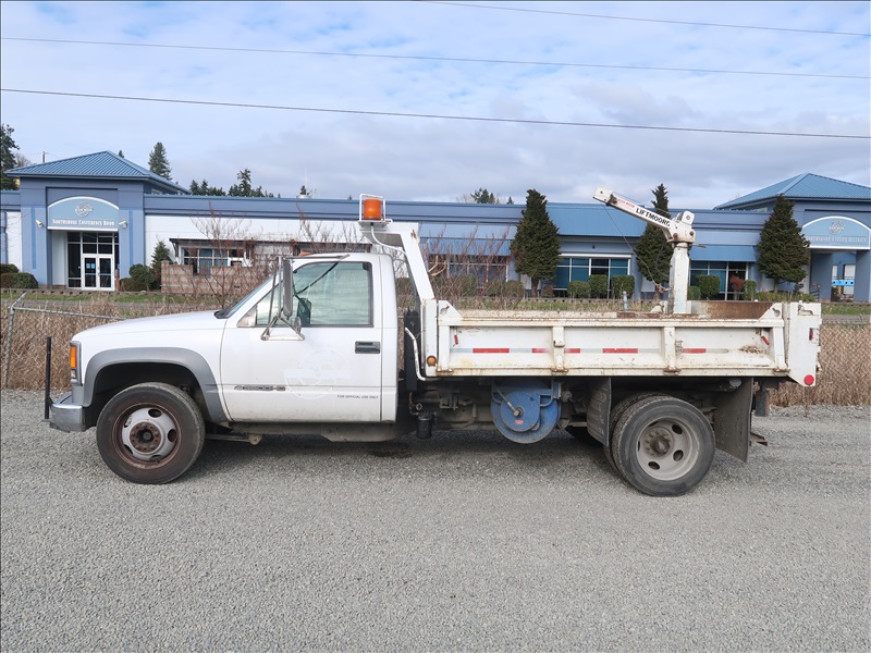 10' FLATBED/DUMP, LIFTMOORE CRANE, V8, AUTO
