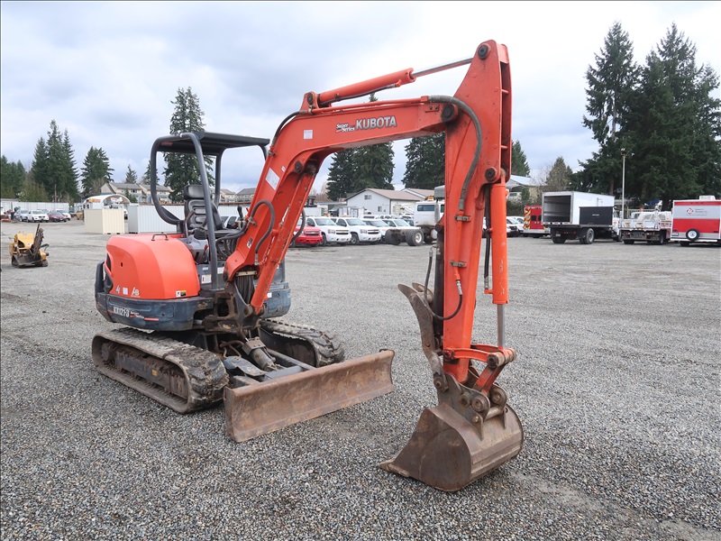 MINI EXCAVATOR, 40.5 HP V2203, SWING BOOM, HYD THUMB, QC 24" BUCKET, 2-WAY BLADE, RUBBER TRACKS, CANOPY