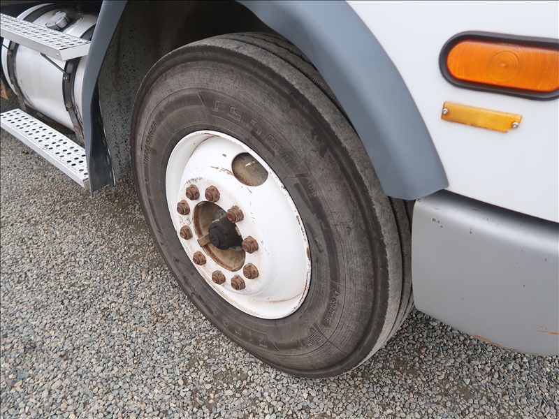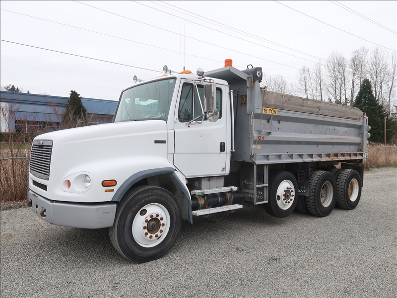 TRI/A, DUMP TRUCK, 14' STEEL BOX, TARP SYSTEM, 370 HP, CUMMINS M11, AUTO, CHALMERS SUSPENSION, 210" W/B, 13,220 LB FRONT, 40,000 LB REARS, DROP AXLE, PLUMBED FOR PUP, ASPHALT GATES