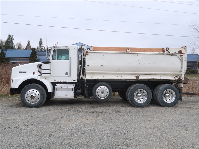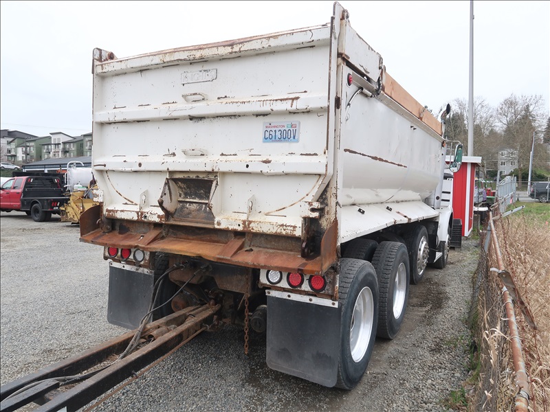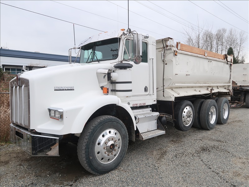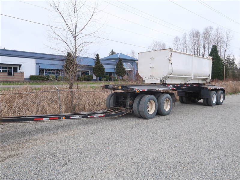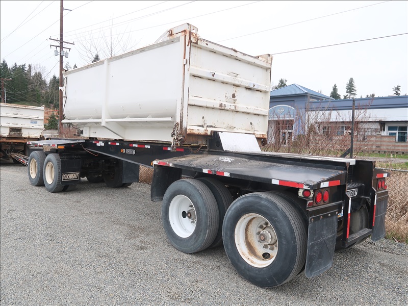 TRI/A TRANSFER TRUCK, 15' STEEL BOX, HIGH LIFTGATE, CAT 3406B, 8LL SPD, BLOCK BEAM SUSPENSION, 246" W/B, 4.56 RATIO, LOCKER, DROP AXLE W/1990 KNIGHT KG286 QUAD/A TRANSFER TRAILER, 15'6" STEEL BOX, S/N: 2X9DP4482LL036104