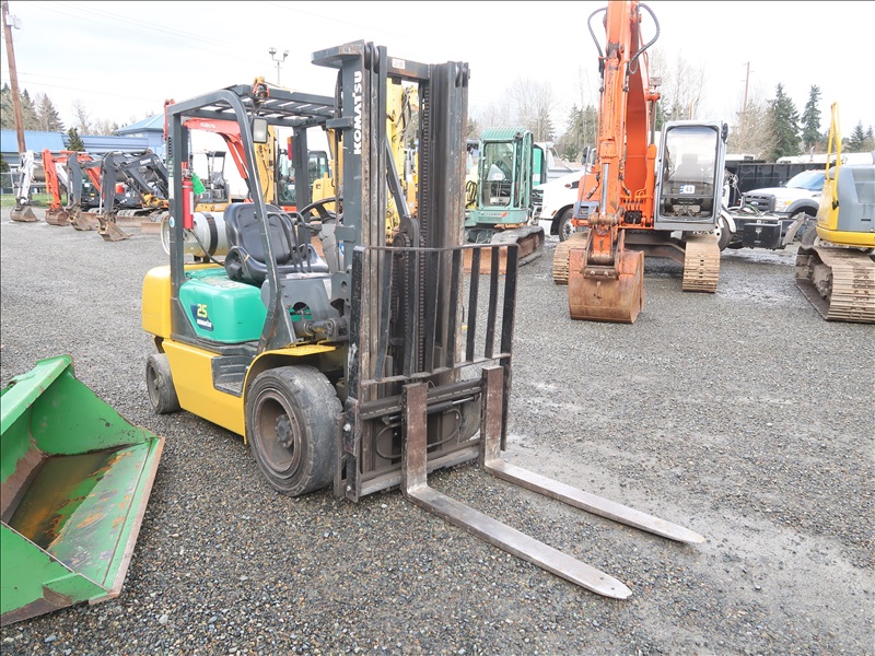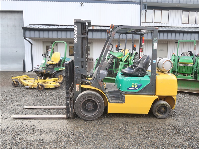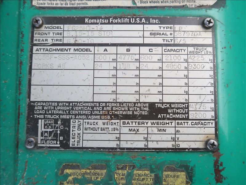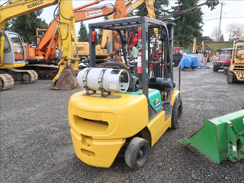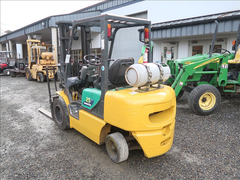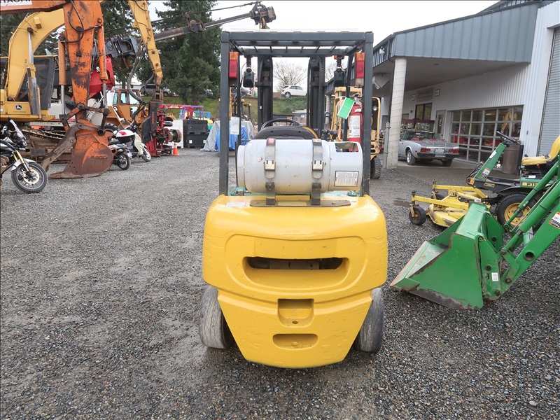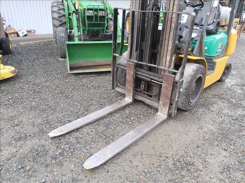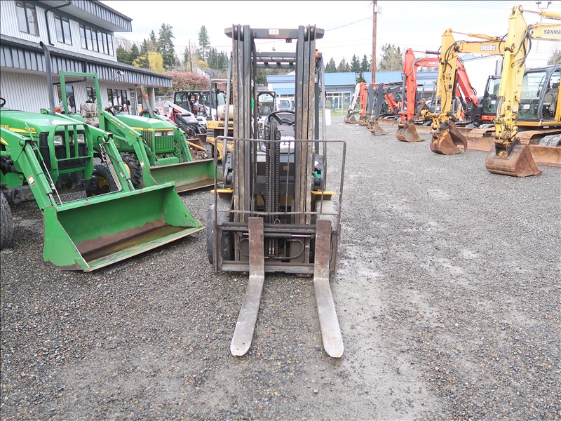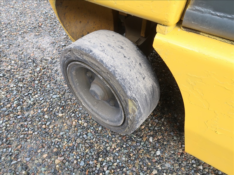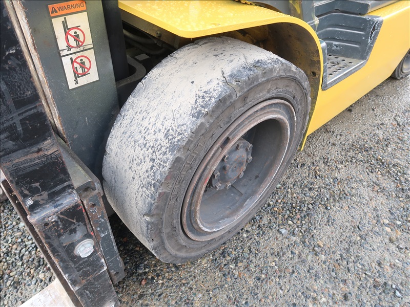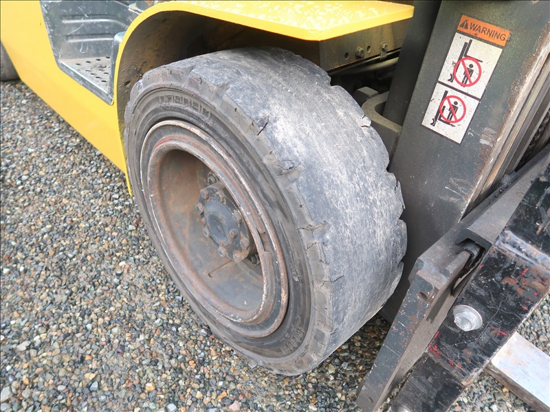 4,650 LB SOLID TRACTION TIRE FORKLIFT, 188" FORK HEIGHT, 3-STAGE MAST, SIDE SHIFT, 4 CYL PROPANE