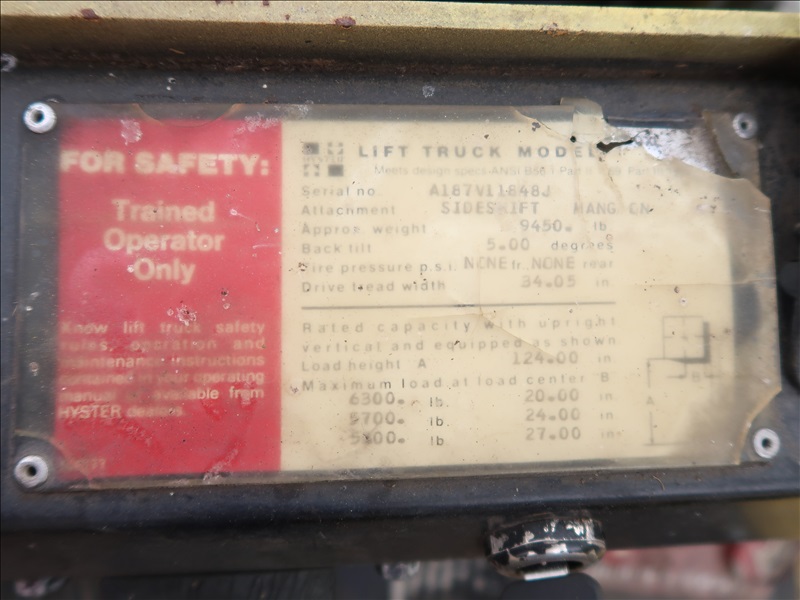 6,300 LB HRT FORKLIFT, 124" FORK HEIGHT, 2-STAGE MAST, SIDE SHIFT, 4 CYL PROPANE