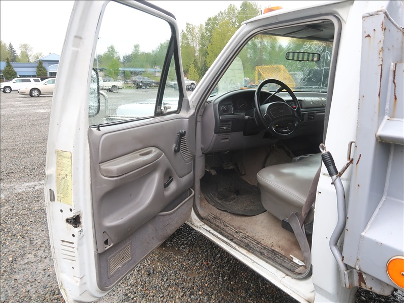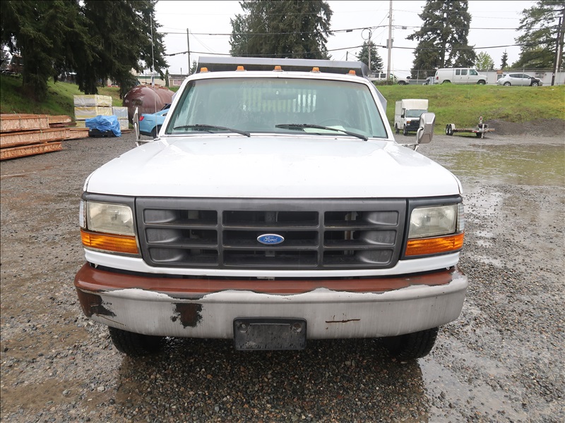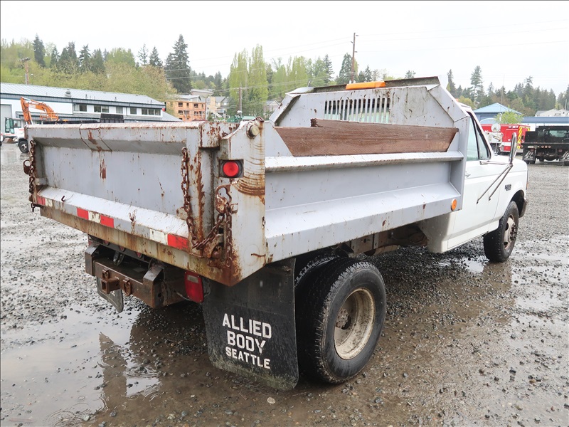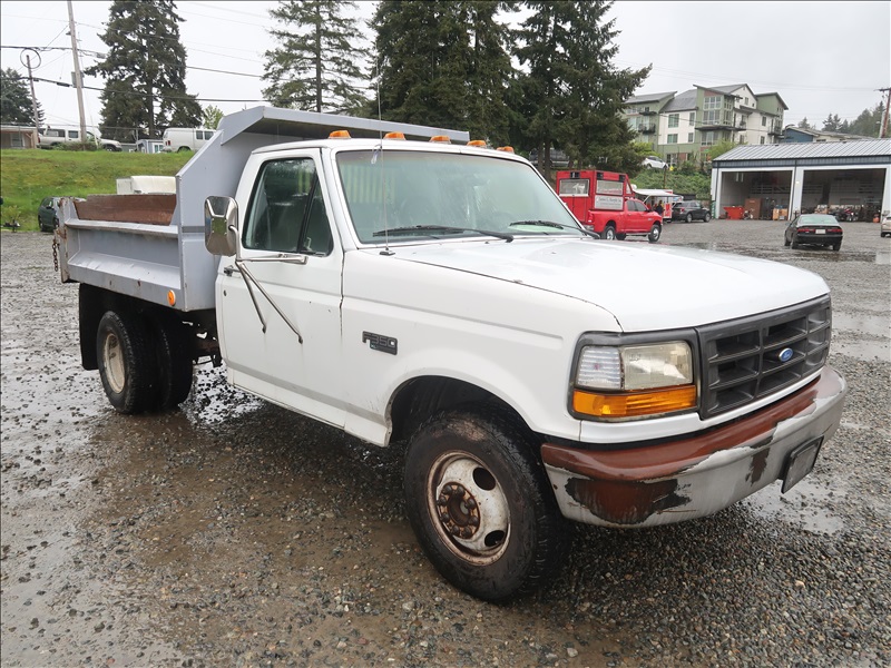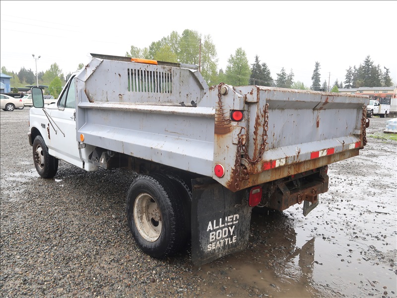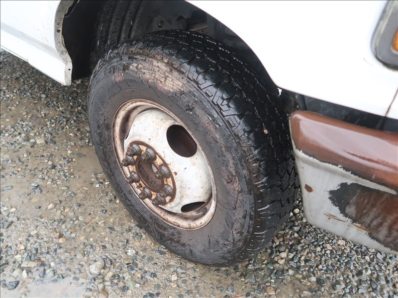 DUMP TRUCK, 7' STEEL BOX, V8, AUTO (DRIVER DOOR NEEDS REPAIRS)