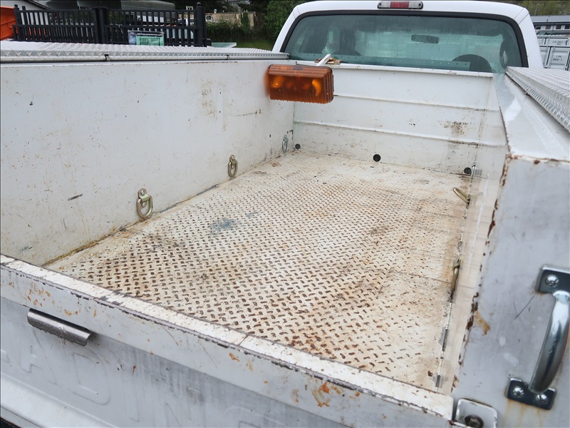 8' STEEL BOX, SERVICE TRUCK, V8, AUTO, SRW (TOWED IN, FUEL TANK PUNCTURED, PLEASE PREVIEW)