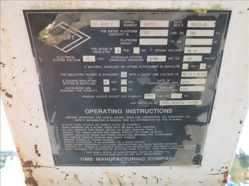BUCKET TRUCK, V8, AUTO, VERSALIFT VST4000I, 350 LB