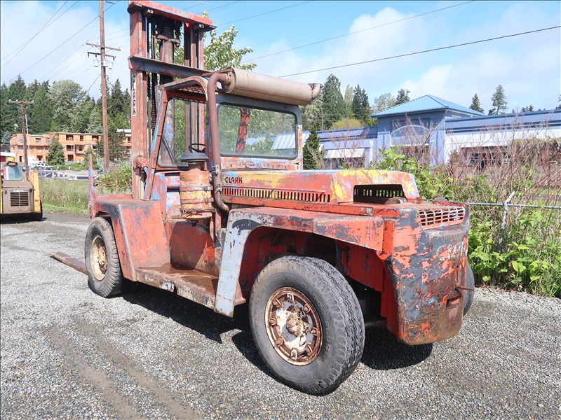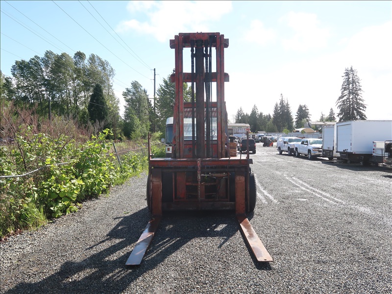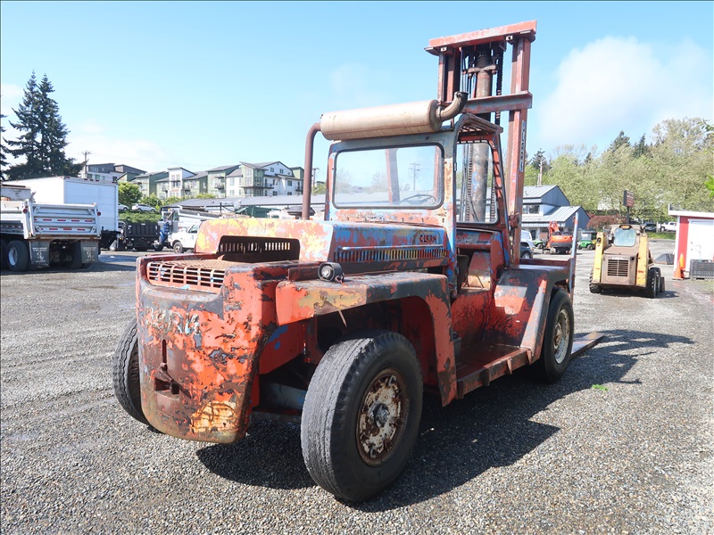 19,000 LB DUAL PNEUMATIC TIRE FORKLIFT, 210" FORK HEIGHT, 2-STAGE MAST, SIDE SHIFT, 8' FORKS, DETROIT 4 CYL DIESEL