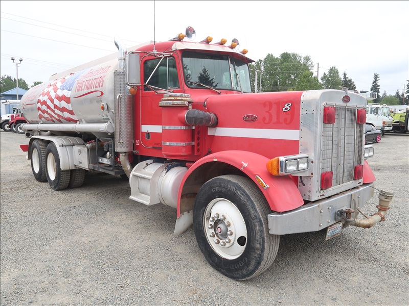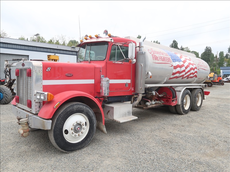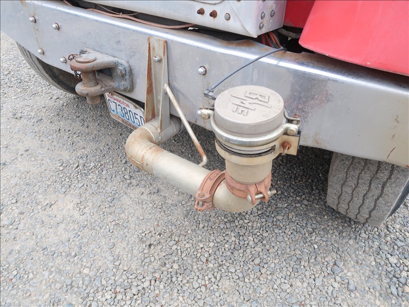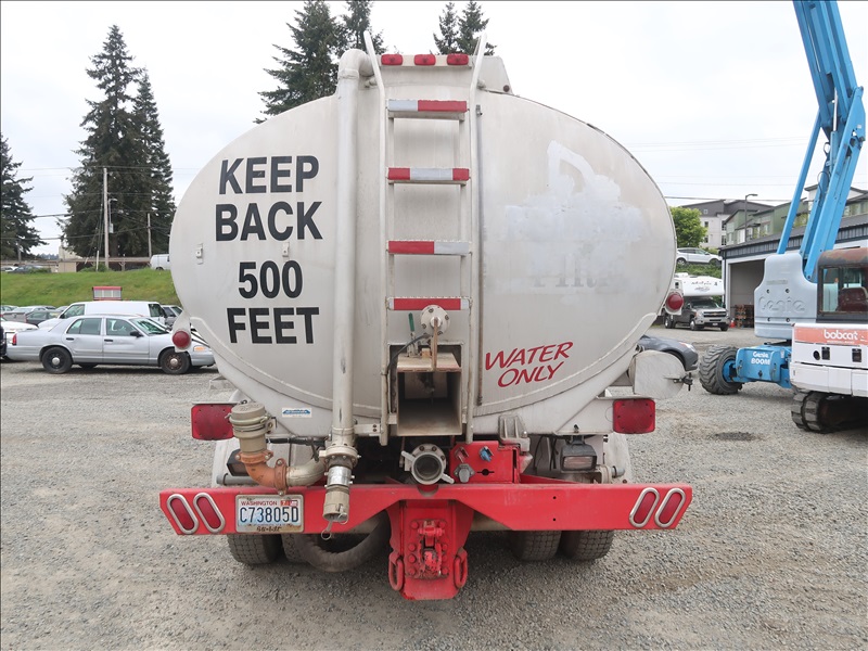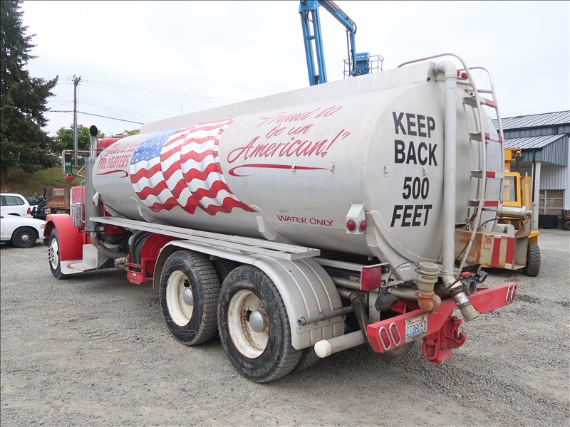 T/A 4,500 GAL WATER TRUCK, DETROIT SILVER 92, 13 SPD, 1 CYL PUMP, FRONT, SIDE, REAR SPRAY FIRE TENDER HOSE REEL