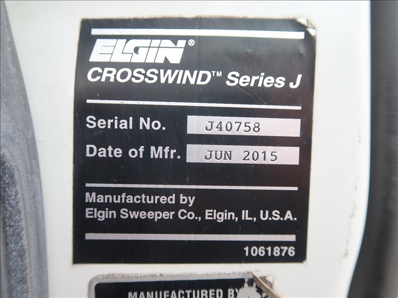 SWEEPER, ELGIN CROSSWIND, SERIES J, 74 HP JOHN DEERE T4I AUX DIESEL, CUMMINS ISB6.7, AUTO, HOUR METER READS: 5,557 (CITY DISCLOSURE: FAN BLADE BEARING IS DAMAGED)