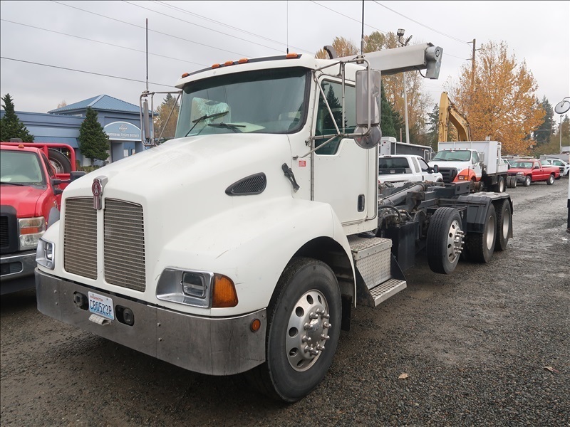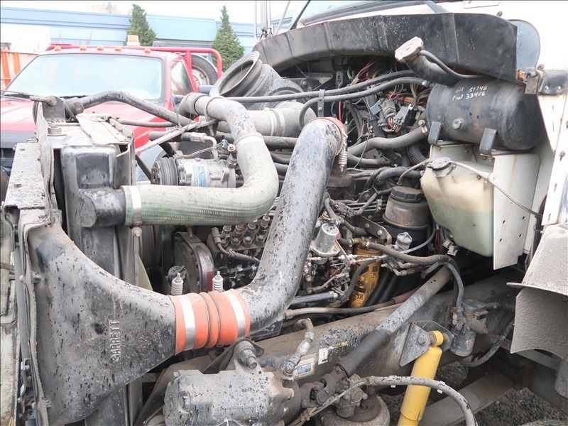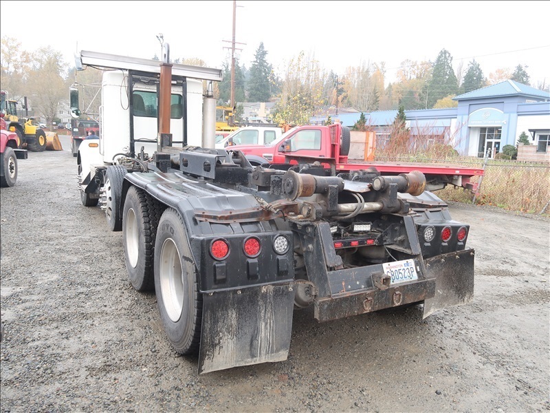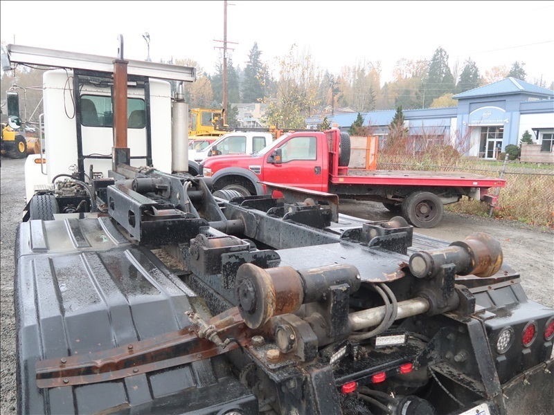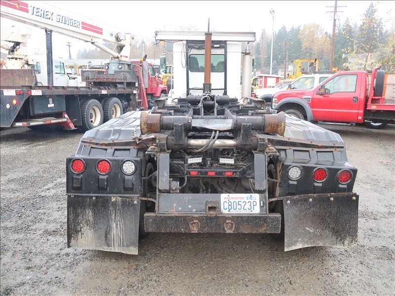 TRI/A CUMMINS 6 CYL DIESEL, 13 SPD, STELLAR HOOK LIFT TRUCK, DROP AXLE