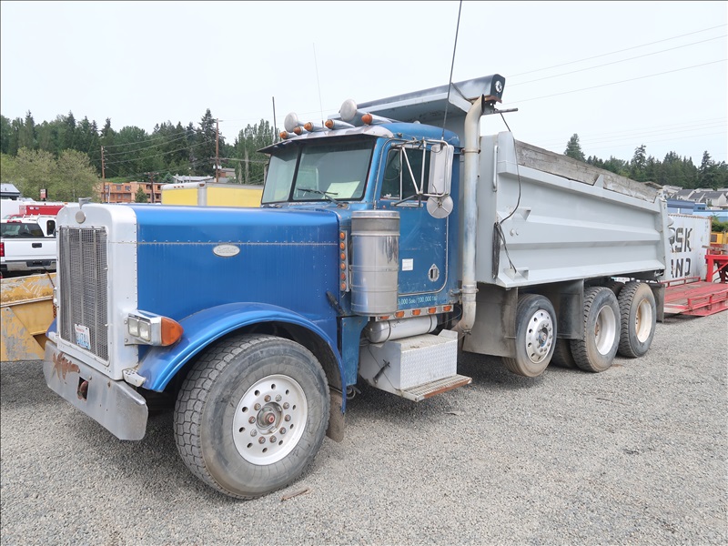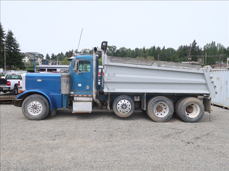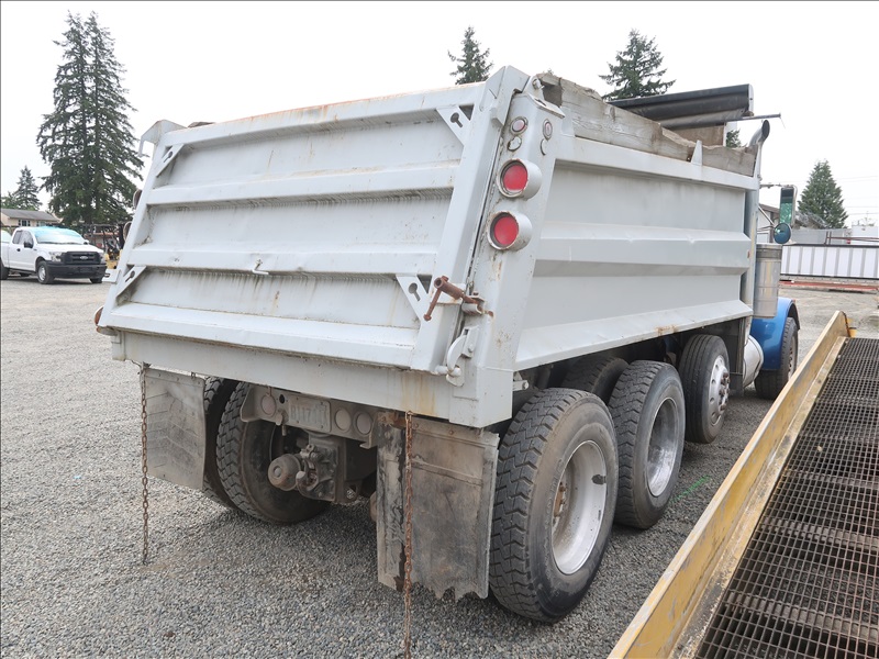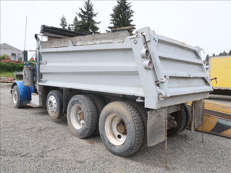 TRI/A DUMP TRUCK, 15' STEEL BOX, TARP SYSTEM, CAT 3406E, 15 SPD, CHALMERS SUSPENSION, 256" W/B, 12,000 LB FRONT, 38,000 LB REARS, DROP AXLE, PLUMBED FOR PUP