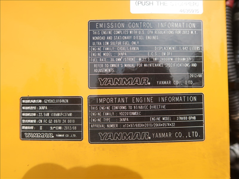 MINI EXCAVATOR, 29.9 HP YANMAR 3TNV88, SWING BOOM, HYD THUMB, AUX HYD, QC 24" BUCKET, BLADE, RUBBER TRACKS, CANOPY