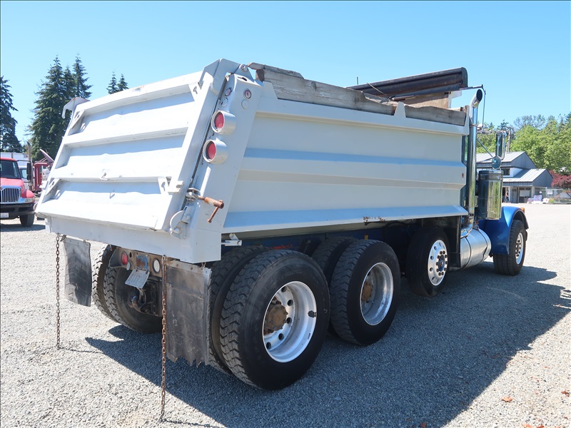 TRI/A DUMP TRUCK, 15' STEEL BOX, TARP SYSTEM, CAT 3406, 15 SPD, CAMELBACK SUSPENSION, 256" W/B, 12,000 LB FRONT, 38,000 LB REARS, DROP AXLE, PLUMBED FOR PUP (**TITLE BRANDED "REBUILT"**)