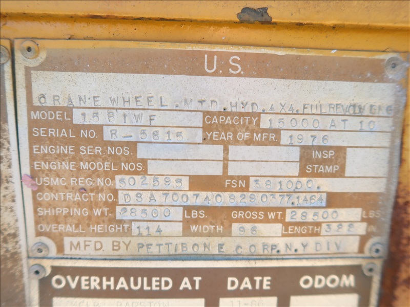 4X4X4 15,000 LB ROUGH TERRAIN CRANE, 20' - 40' 3-SECTION BOOM, OUTRIGGERS, DETROIT 4 CYL, 3F/3R AUTO (BRAKES DO NOT WORK