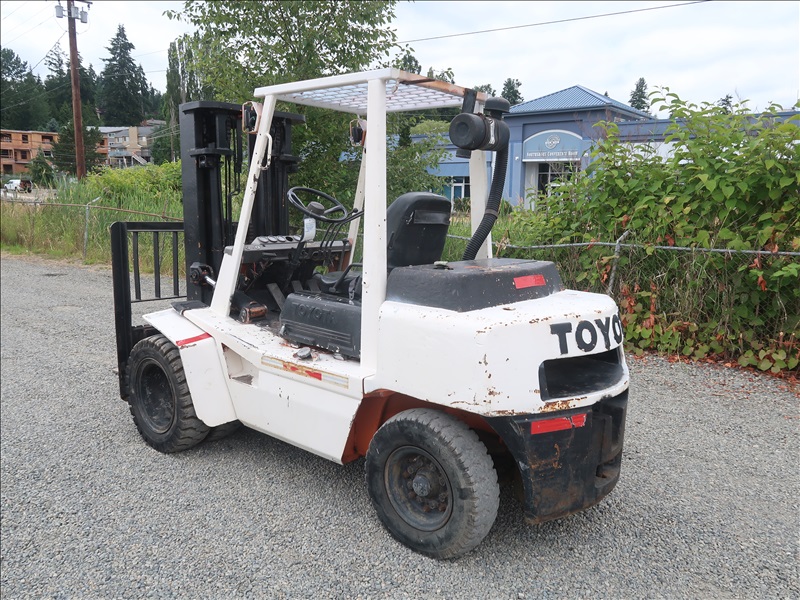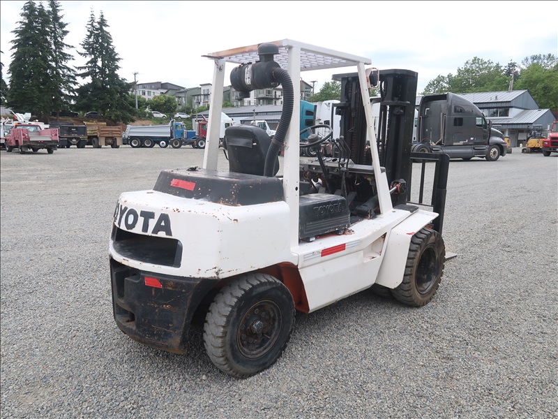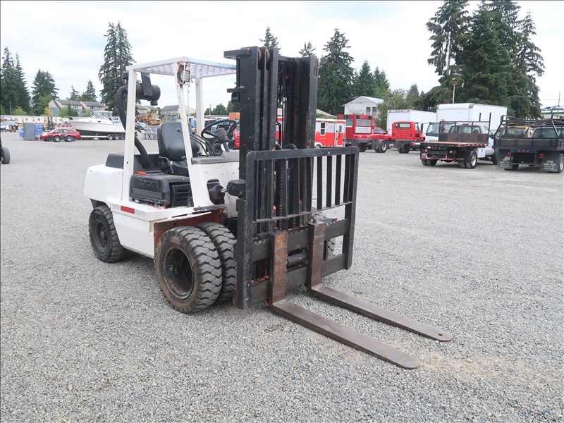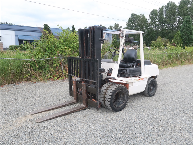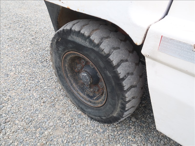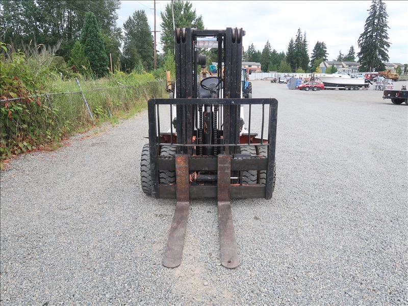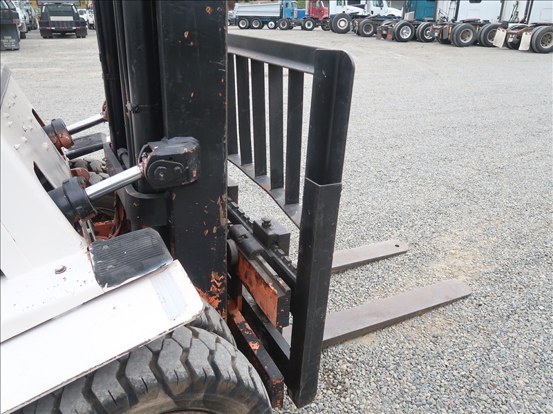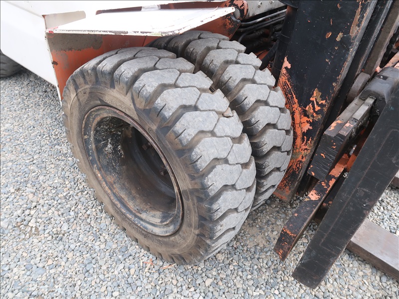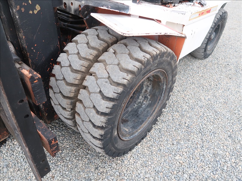 7,700 LB DUAL SOLID TRACTION TIRE FORKLIFT, 169" LIFTING HEIGHT, 3-STAGE MAST, SIDE SHIFT, 6 CYL DIESEL