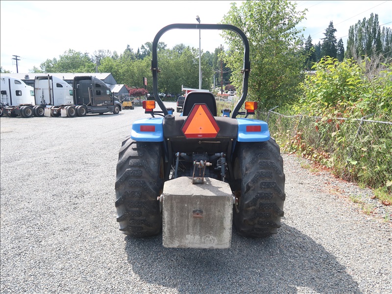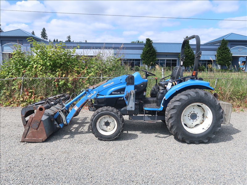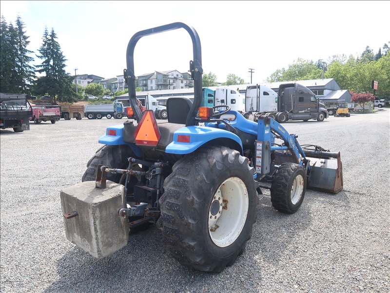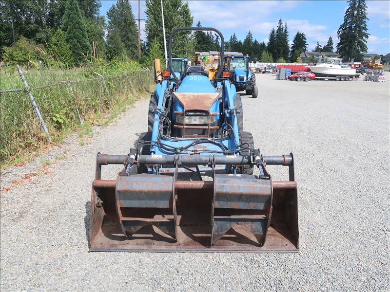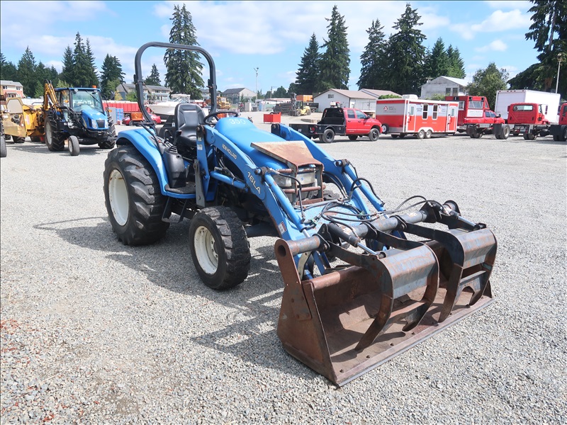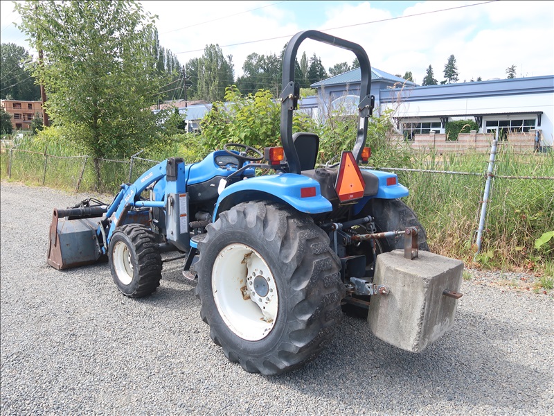 MFWD TRACTOR, 45 HP SHIBAURA N844L, 4 RANGE DUAL PATH HYDROSTATIC TRANS, 16 LA LOADER, ATI GRAPPLE BUCKET, PTO, REMOTE, 3 POINT HITCH