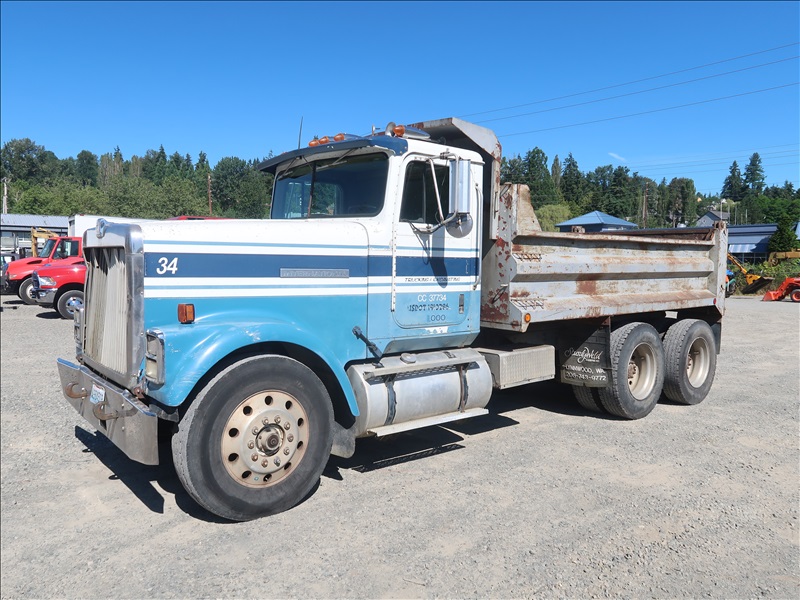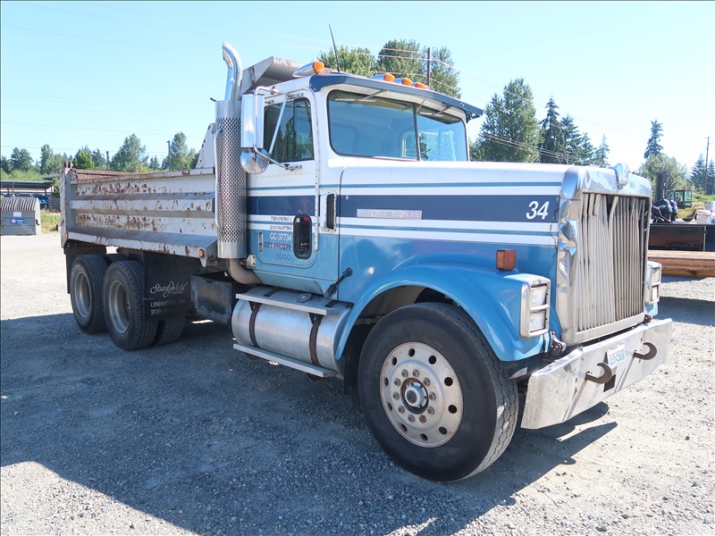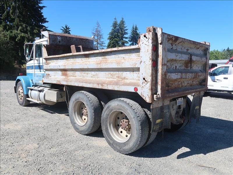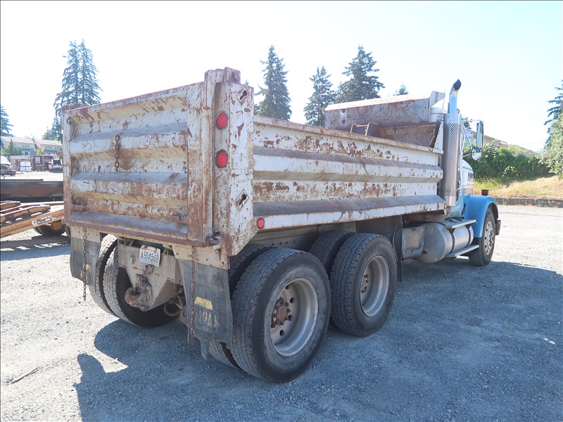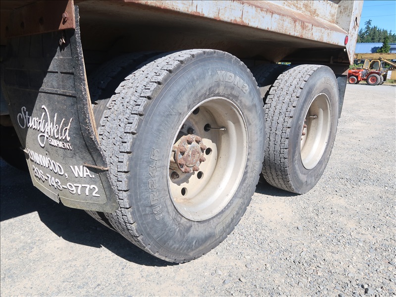 T/A DUMP TRUCK, 14' STEEL BOX, 400 HP CUMMINS NTC 400, 13 SPD, BLOCK BEAM SUSPENSION, 210" W/B, 12,000 LB FRONT, 19,000 LB REARS