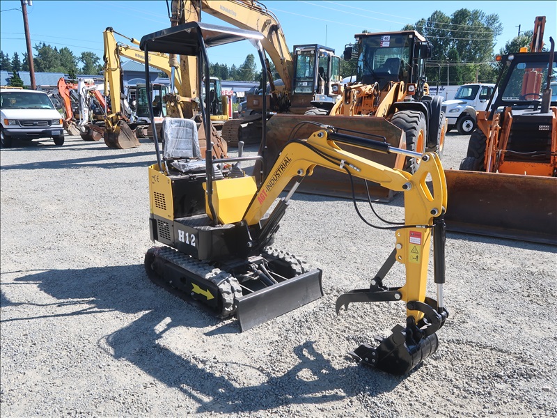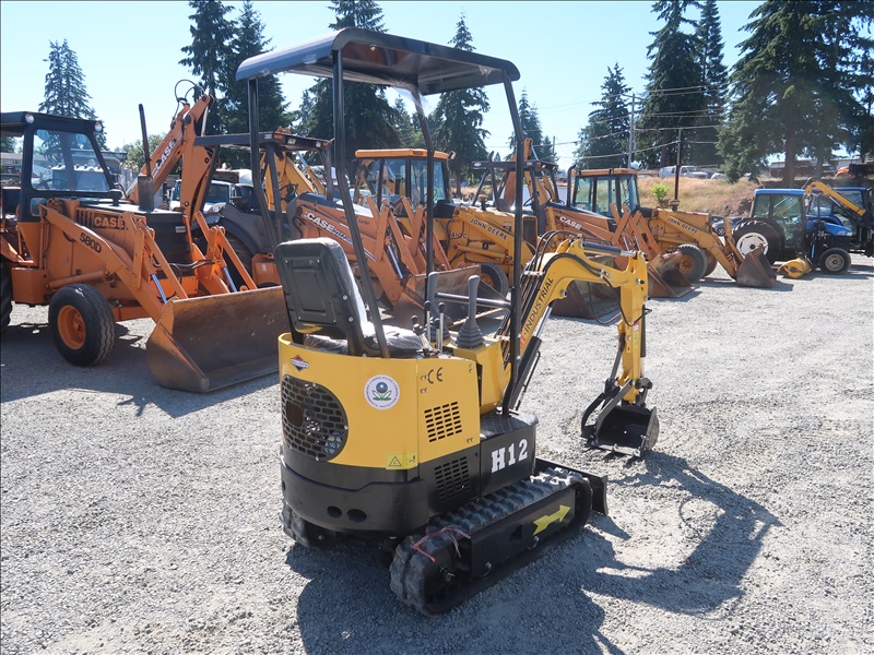 MINI EXCAVATOR, 13.5 HP, BRIGGS & STRATTON, 420CC, 14" BUCKET, ADJUSTABLE FIXED THUMB, BLADE, RUBBER TRACKS, CANOPY (UNUSED)