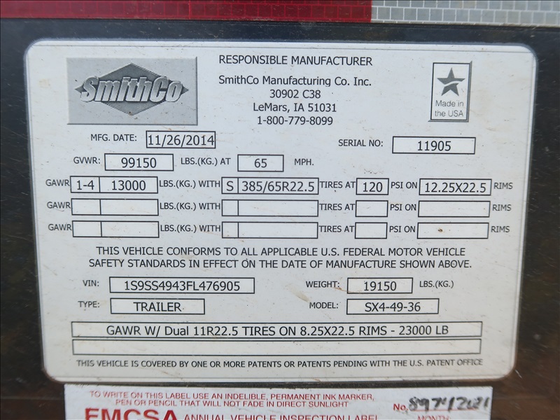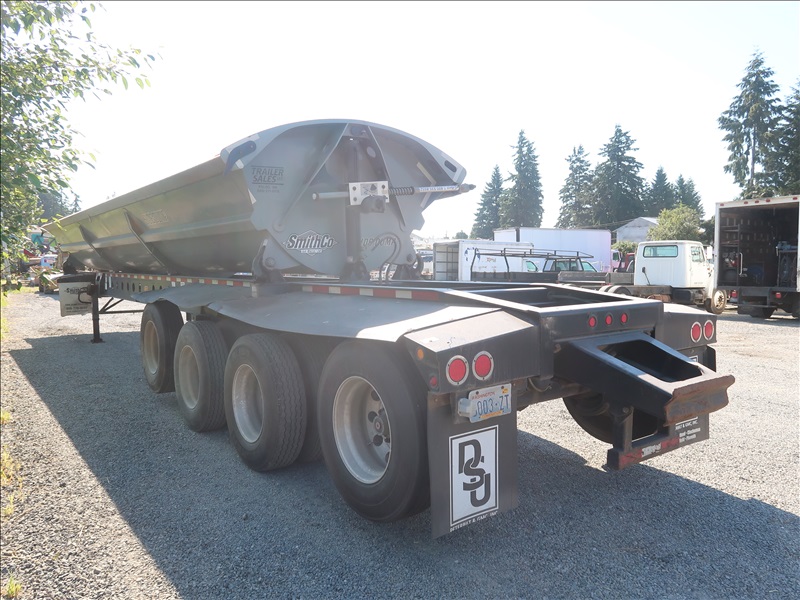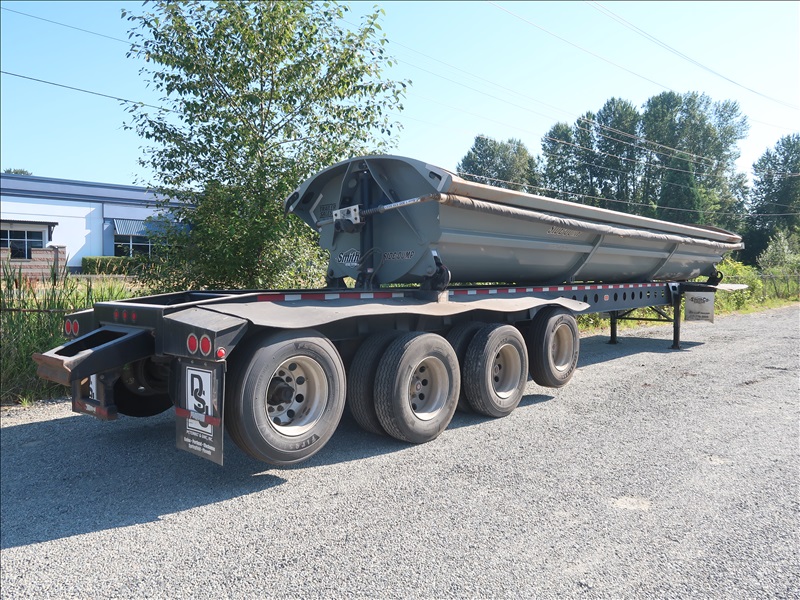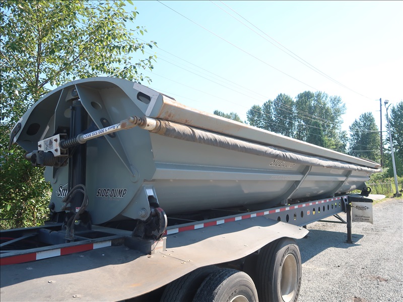 QUAD/A 49' 99,150 LB GVWR SIDE DUMP TRAILER, 36' STEEL BOX, FRONT & REAR DROP AXLES, RIGHT WEIGH LOAD SCALE, TARP SYSTEM, 11R22.5
