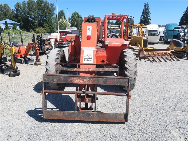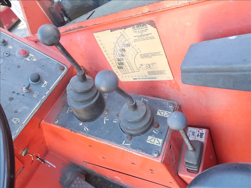 4X4X4 8,000 LB TELESCOPIC FORKLIFT, 42' LIFT HEIGHT, 3-SECTION BOOM, LEVELING CARRIAGE, CUMMINS 4BT-C (CITY DISCLOSURE: HAS HYDRAULIC LEAKS, TELESCOPIC FUNCTION NOT OPERATIONAL)