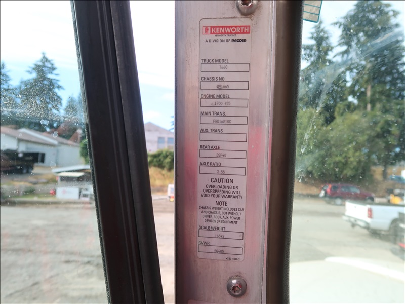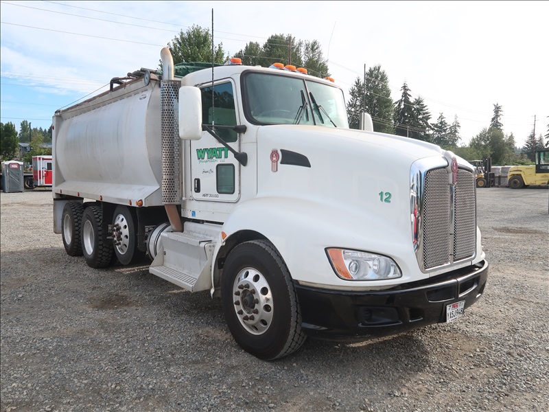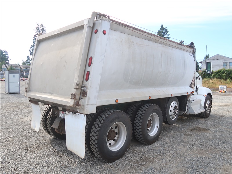 TRI/A DUMP TRUCK, 15' ALUMINUM BOX, TARP SYSTEM, 455 HP PACCAR 6 CYL DIESEL, 10 SPD, 8 BAG SUSPENSION, 209" W/B, 13,200 LB FRONT, 40,000 LB REARS, 3.55 RATIO, DROP AXLE