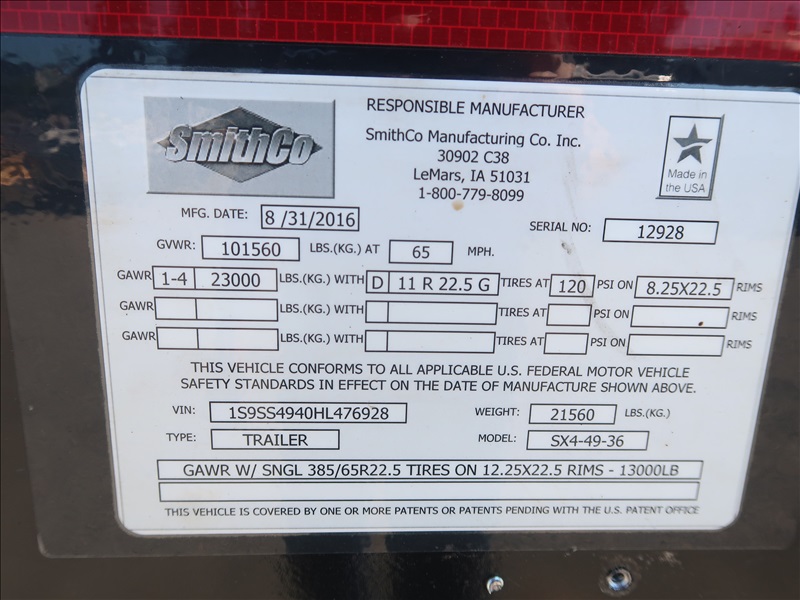 QUAD/A, 49', 101,560 LB GVWR SIDE DUMP TRAILER, 36' STEEL BOX, FRONT & REAR DROP AXLES, RIGHT WEIGH LOAD SCALE, A/B, TARP SYSTEM, 11R22.5