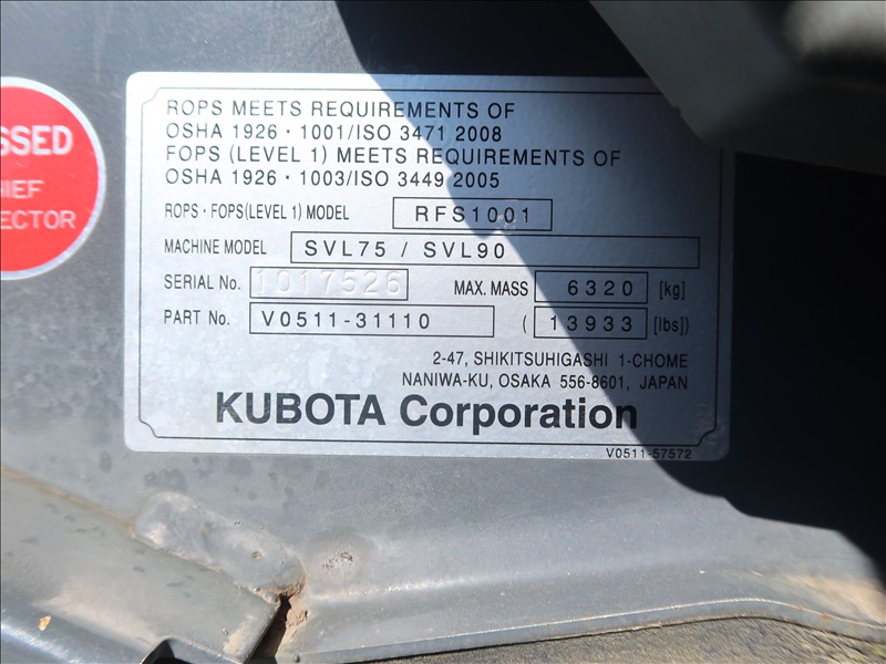 2015 KUBOTA SVL75-2 TRACKED SKIDSTEER