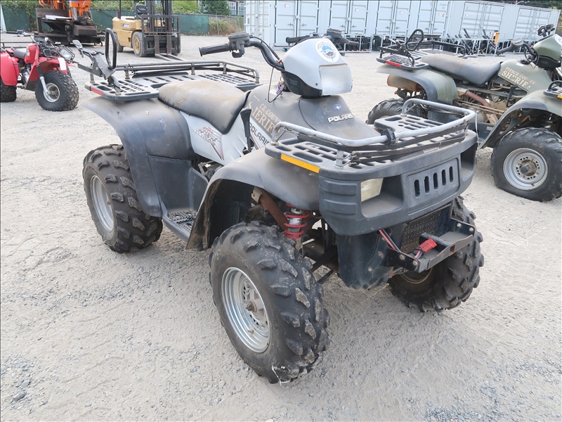 4X4, 600 CC TWIN CYL ENGINE, AUTO, ATV, WARN 2,500 LB WINCH (BROKEN FRONT SUSPENSION, CONDITION UNKNOWN, PLEASE PREVIEW)