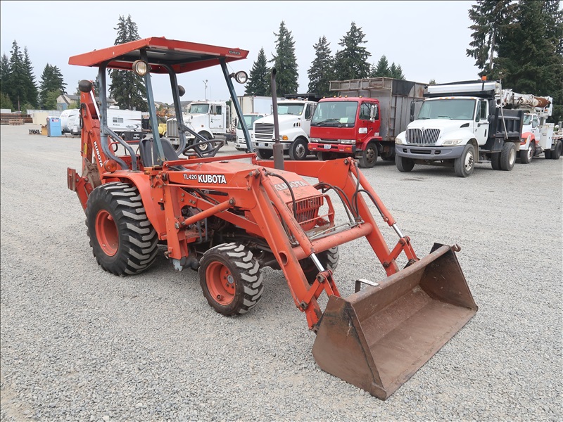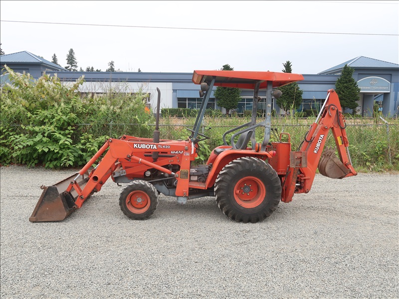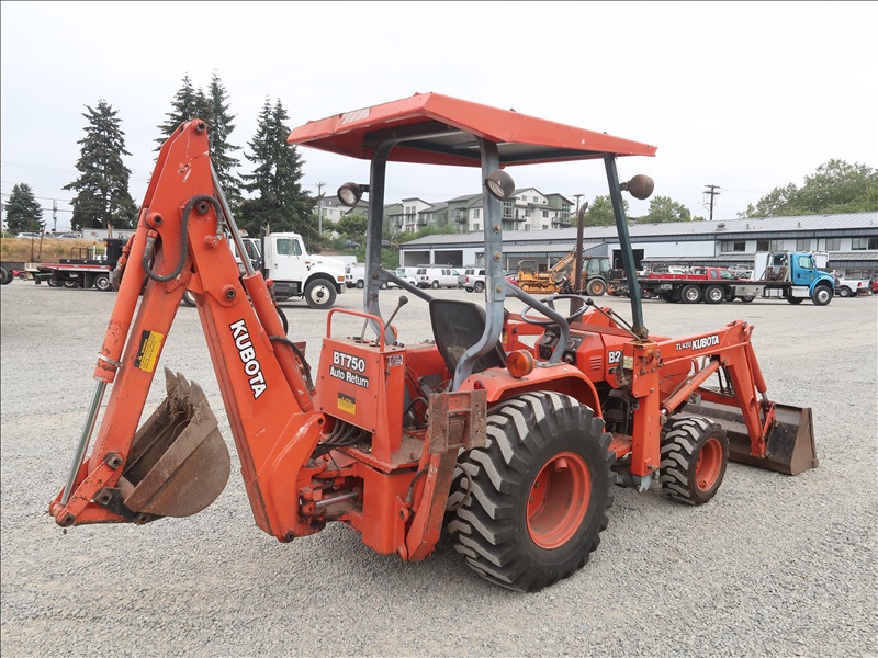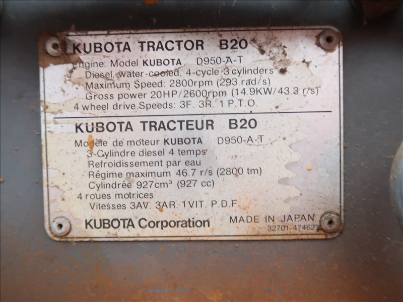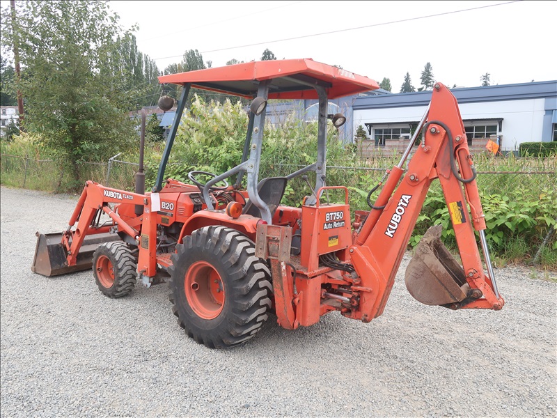 MFWD TRACTOR, LOADER, BACKHOE, 20 HP D950AT, 3-RANGE HYDROSTATIC, TL450 LOADER BUCKET, BT750 BACKHOE, PTO, CANOPY
