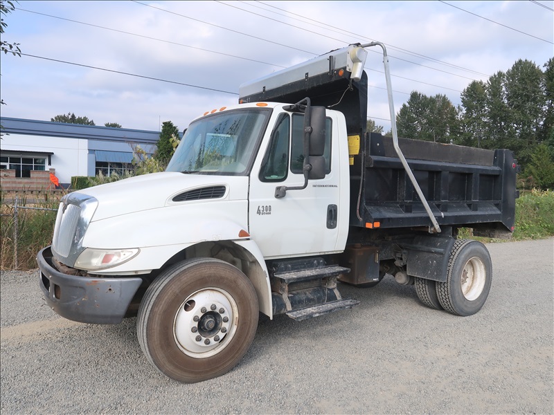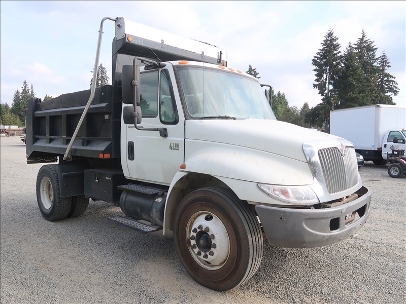 DUMP TRUCK, 10' STEEL BOX, TARP SYSTEM, DT466, 7 SPD, SPRING SUSPENSION, 154" W/B, 12,000 LB FRONT, 21,000 LB REARS