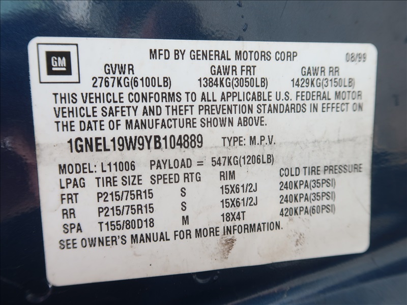 6-PASSENGER VAN, AWD, 6 CYL, AUTO, A/C, CRUISE, TILT, P/WDW, P/LOCK (TOWED IN, ENGINE KNOCKS)