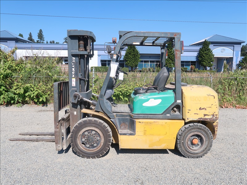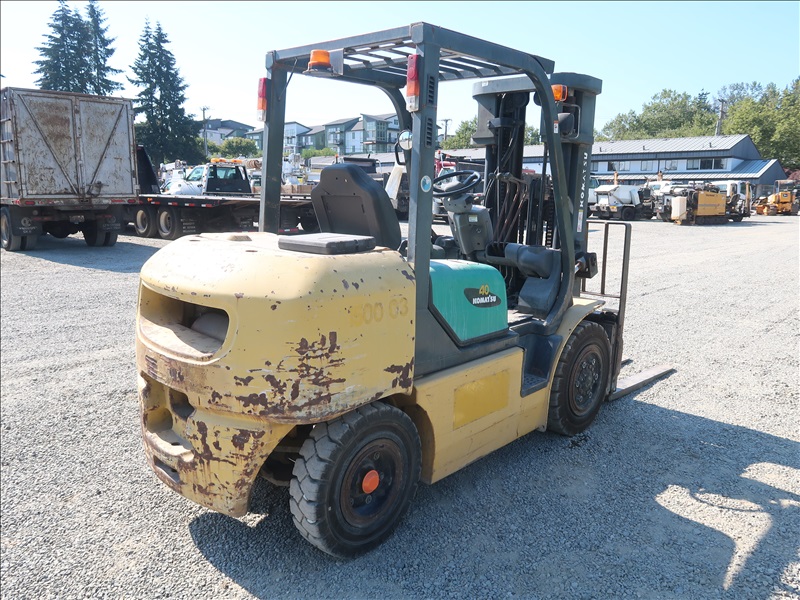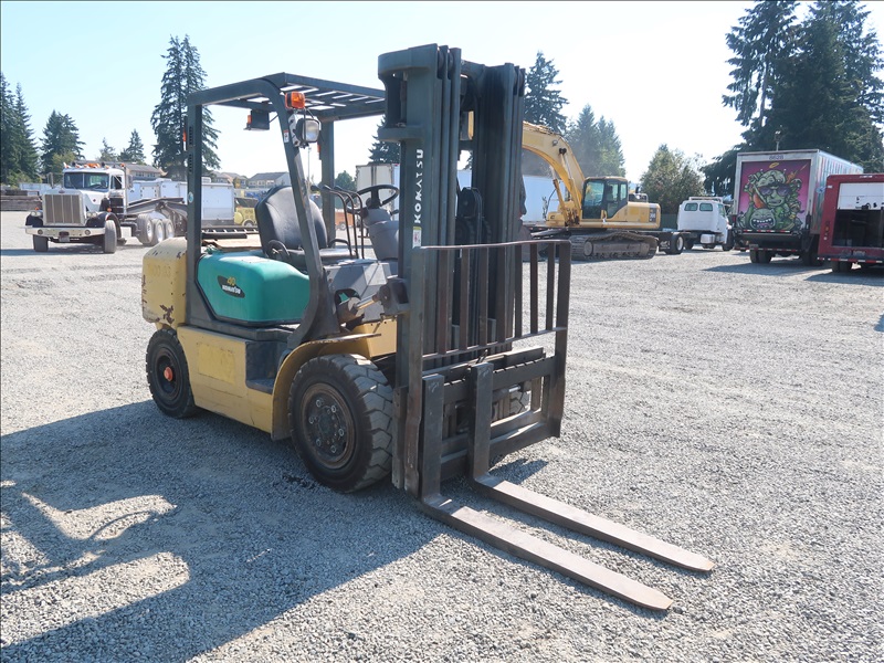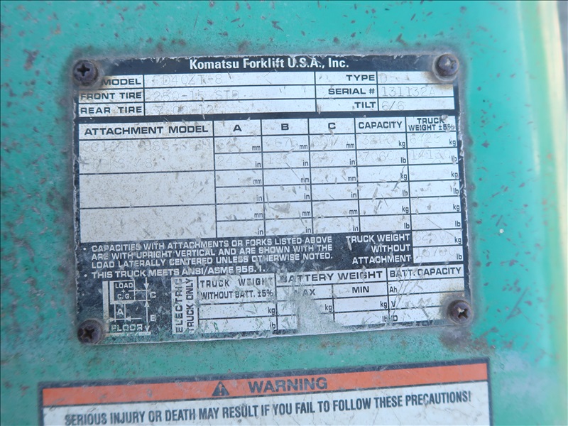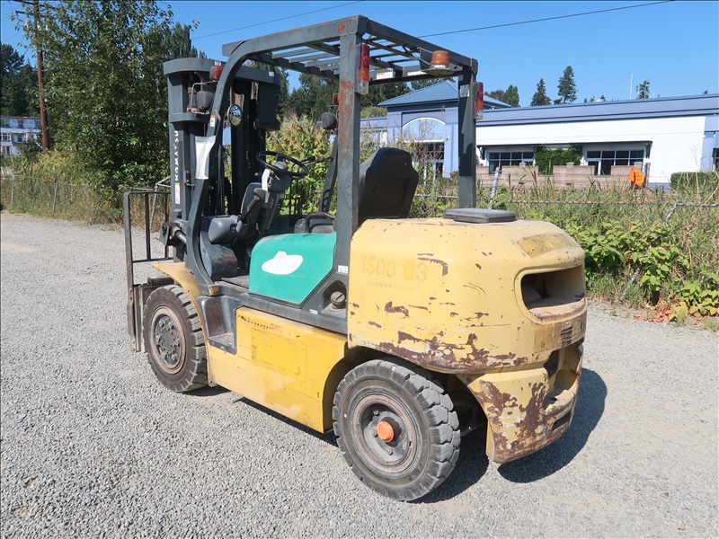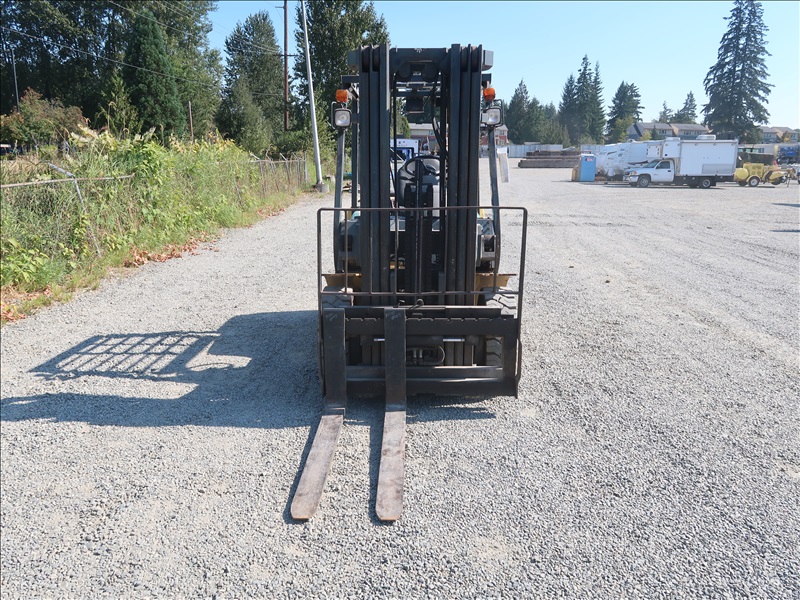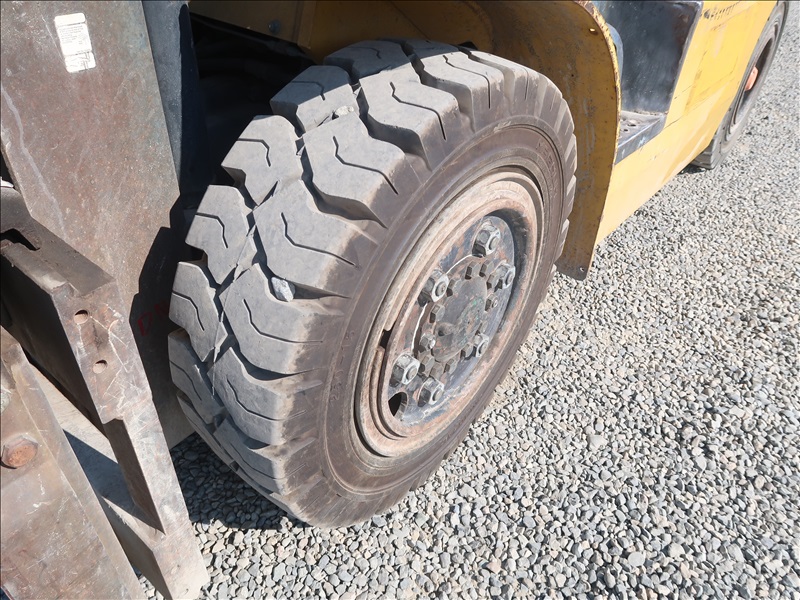 7,060 LB SOLID CUSHION TIRE FORKLIFT, 183" FORK HEIGHT, 3-STAGE MAST, SIDE SHIFT, 94 HP S6D102E-2 DIESEL
