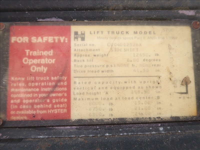 8,000 LB HRT FORKLIFT, 191" FORK HEIGHT, 3-STAGE MAST, SIDE SHIFT, 6 CYL PROPANE