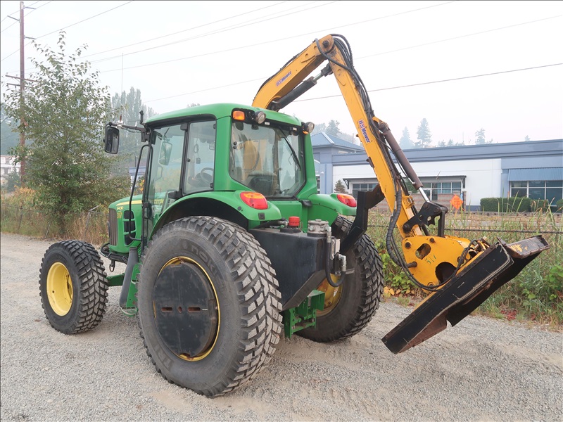MFWD TRACTOR 90 PTO HP 4.5L, INFINITELY VARIABLE TRANS, PTO, ELECTRICS, US MOWER 50 URCM-H-P 60" ROTARY BOOM MOWER, AC CAB