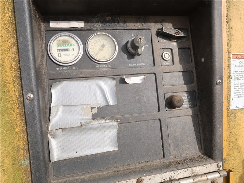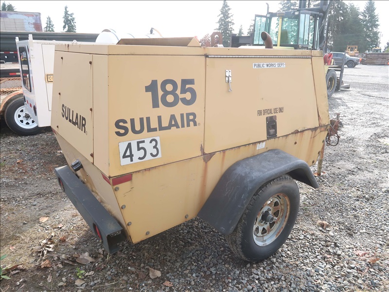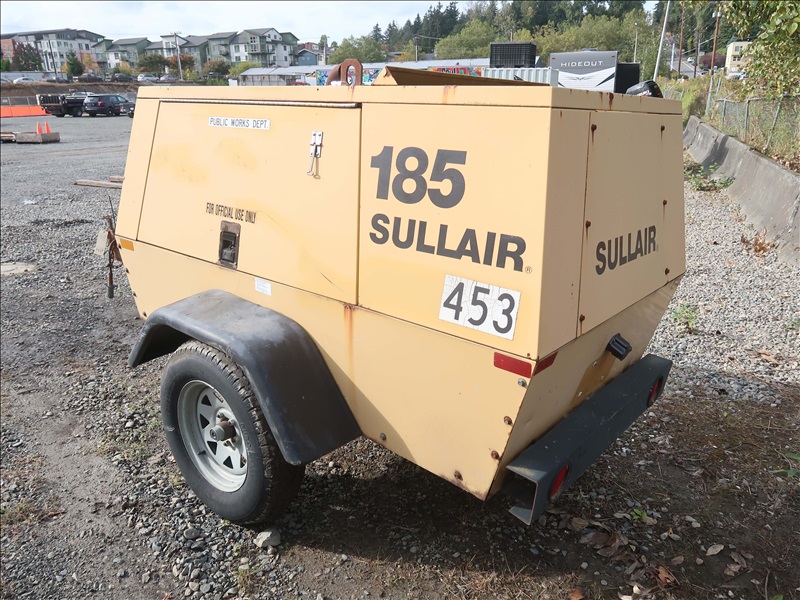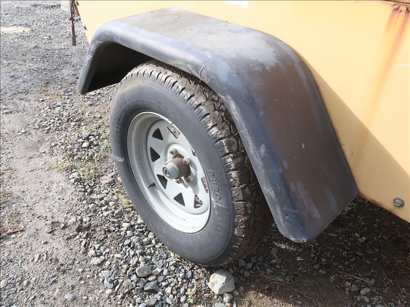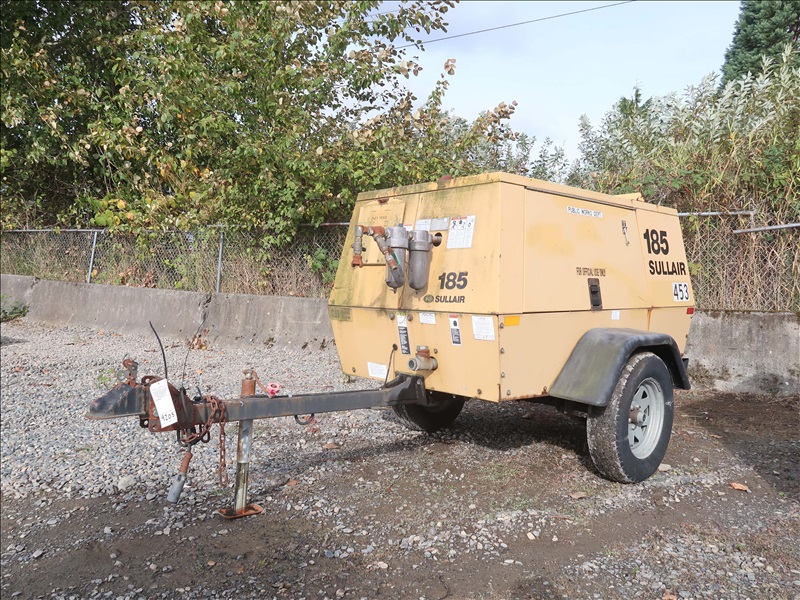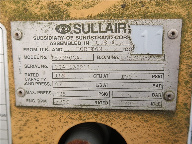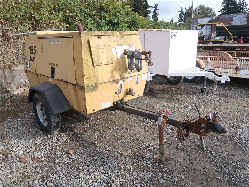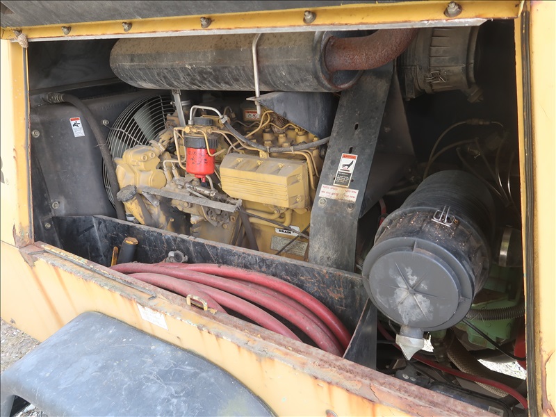 S/A 185 CFM TRAILER MOUNTED AIR COMPRESSOR, PERKINS 4 CYL DIESEL ENGINE, 205/75D15, HOUR METER READS: 763 (RUNS & OPERATES)